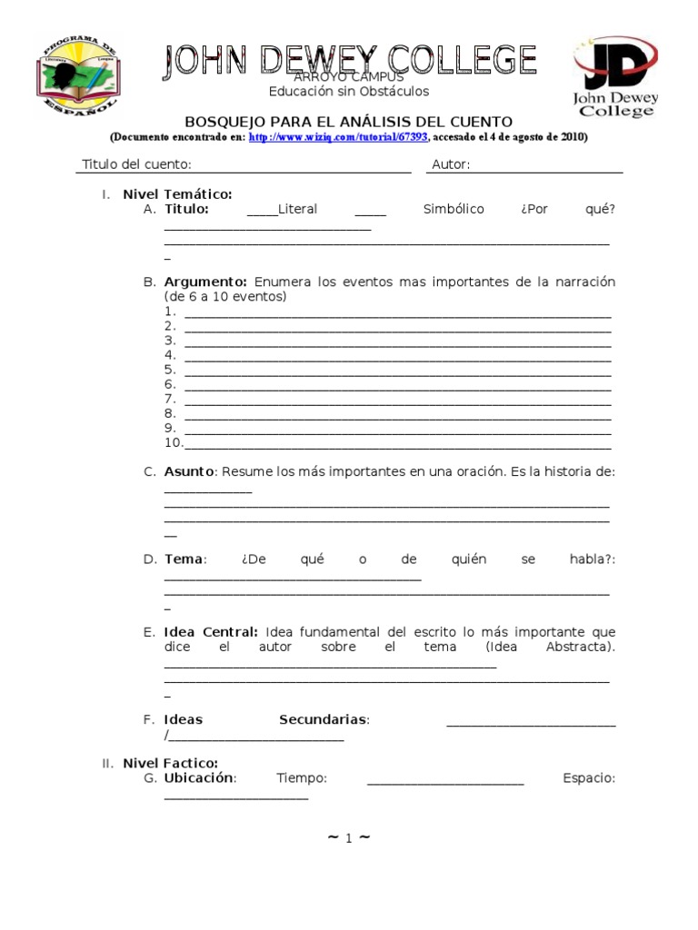 Bosquejo Para El Analisis Del Cuento | Narración | Cuentos